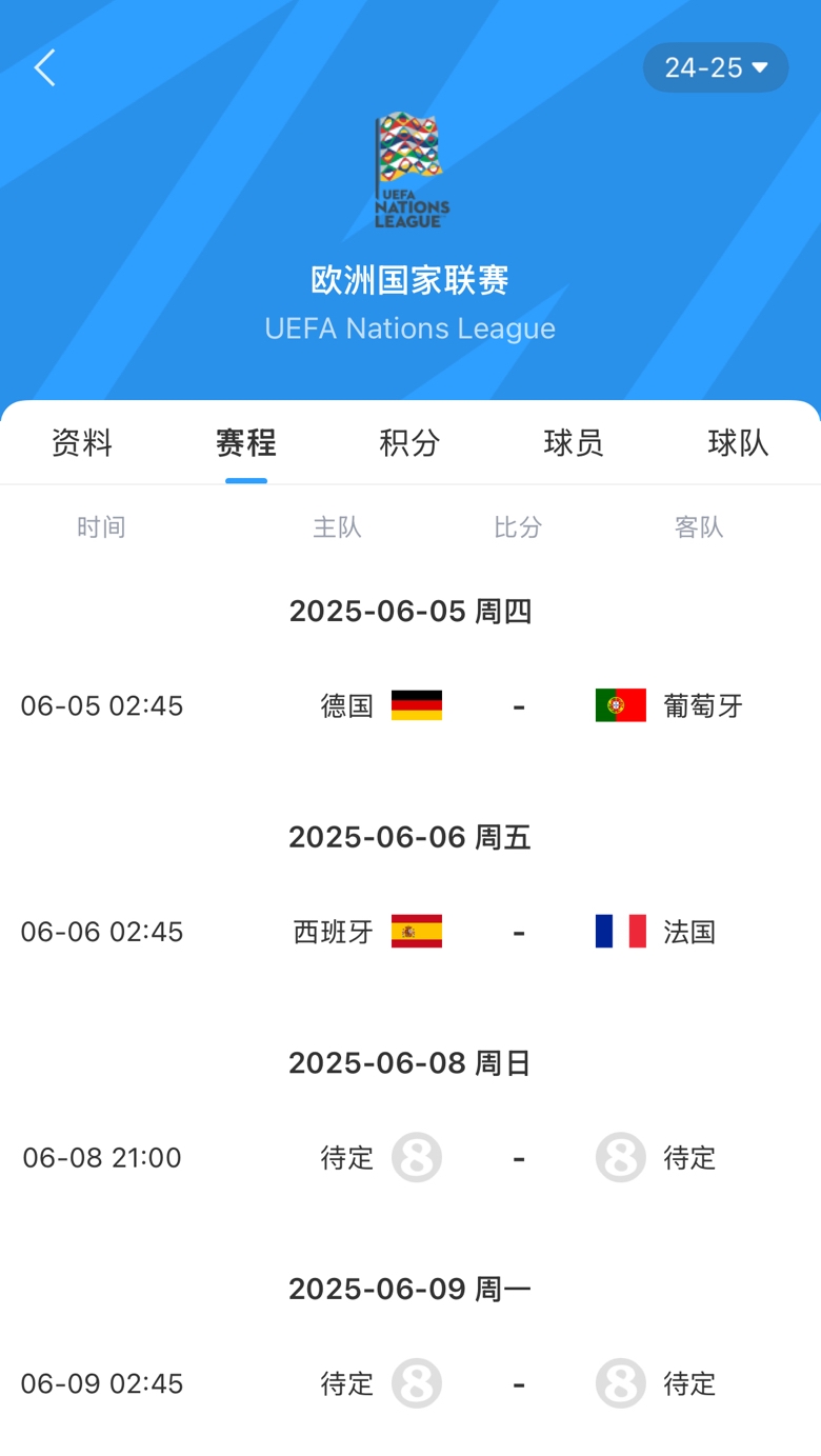 法国队将于北京时间6月6日凌晨2点45对阵西班牙队,另一场半决赛是德国vs葡萄牙。